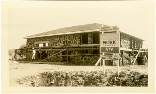 From ìW.P. 4268, Application 1 (1937-38): Lauderdale Consolidated School Vocational Building, Lauderdale County. Showing details of veneering and completed building.î ìNYA. I-A4-38î. Sysid 74305. Scanned as TIFF in 2010/09/22 by MDAH. Credit: Courtesy of the Mississippi Department of Archives and History.