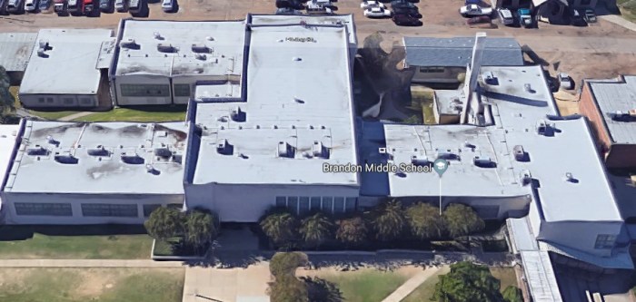 Opened in 1942, the original building at Brandon Middle School, the original High School Building, was designed by N. W. Overstreet, Mississippi’s most prominent twentieth-century architect, celebrated for his designs in the Streamlined Moderne and International styles and his use of concrete as both a structural and decorative building material.