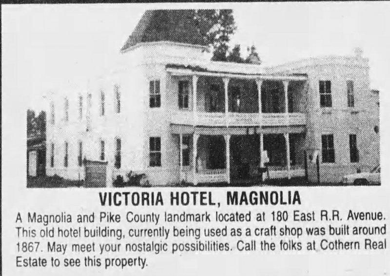 ‘Enterprise_Journal_Sun__Nov_15__1998_’ Published November 22, 2018 at 800 × 566 in “Near depot, old stand, good trade”: Victoria Hotel in Magnolia Enterprise Journal, Nov. 15, 1998. ‹ Back