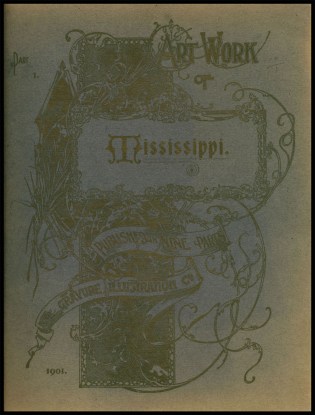 Early in 2019, in doing some research on another topic, I was reminded of the existence of a folio- sized volume, originally issued in 9 paper folders, called Art Work of Mississippi/Gravure Illustration Company of Chicago/1901.  I had seen other volumes of this type before–either about cities, regions, or, like this one, states(there are two editions of such a volume about nearby Rochester [1896 and 1913])–and I began to search the net to see if the  MS volume was ‘around’ and if it had been digitized.  I discovered that a few of the major institutions of higher learning in MS–U of MS, USM, MSU, plus MDAH–had copies (as did the Birmingham, AL, public library), but none of these was digitized.I could well have seen an original volume at USM or MDAH years ago, but any notes I took then were long-gone.