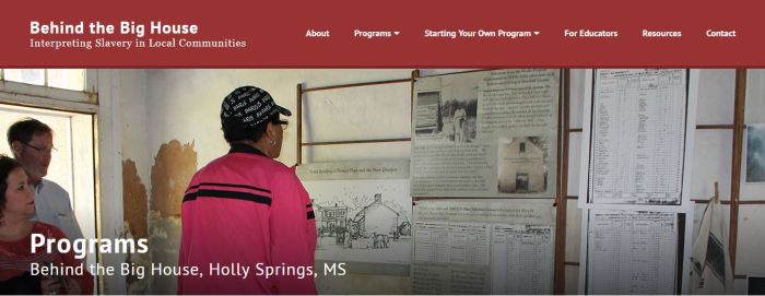 Preserve Marshall County & Holly Springs, Inc.’s preservation initiative: the “Behind the Big House” Program, now in its eighth year, continues its educational outreach efforts towards interpreting the legacy of slavery. With much thanks for the continued grant-assistance funding from the Mississippi Humanities Council, we have made plans for an in-depth look at two program sites this year: the slave quarters, kitchen and adjacent domestic areas for both the Hugh Craft House, located at 184 S. Memphis Street and Burton Place, located at 248 S. Memphis in Holly Springs, Mississippi. This year we will have additional funding from the Mississippi Hills National Heritage Area Alliance, and we welcome their interest and support! http://preservemarshallcounty.org/behind-the-big-house/