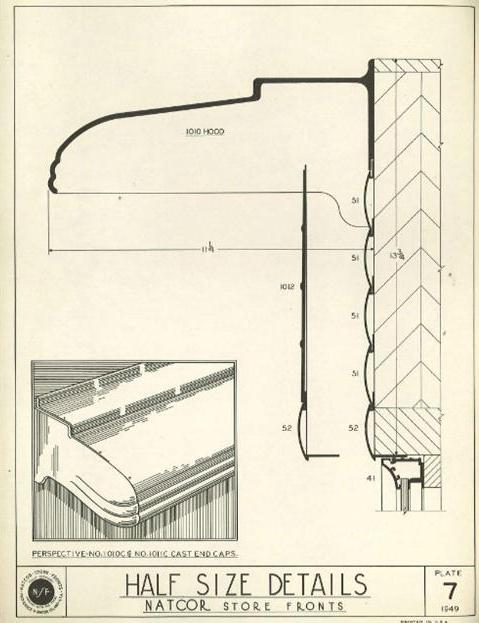 ‘Natcor 1949’ Published August 23, 2012 at 479 × 623 in Natcor Extruded Metal Awning Bar Hood Natcor Awning Hood perspective rendering and cross section. Natcor Store Front Catalog 1949. ‹ Back